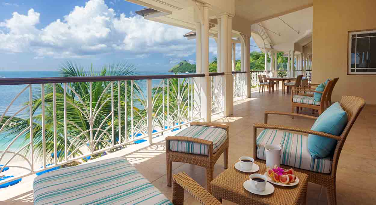 This exquisite beachfront Penthouse Suite overlooks a stunning white sand beach and the turquoise Caribbean Sea and is a few moment’s walk to two of the three restaurants on the property.